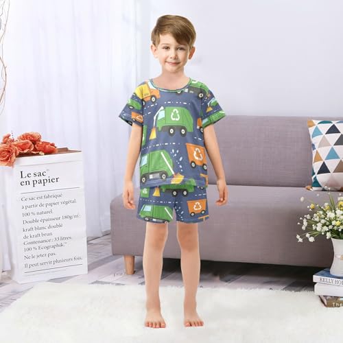 Pajama Sets Short Sleeve Recycling Trucks and Equipment Soft Cotton Summer Sleepwear 2 Piece PJS Size 5-14T 6
