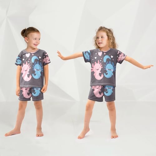 Pajama Sets Short Sleeve Cute Axolotls with Hearts Soft Cotton Summer Sleepwear 2 Piece PJS Size 5-14T 5