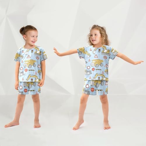 Pajama Short Sets Construction Trucks Soft Cotton Summer Sleepwear 2 Piece PJS Size 5-14T 2