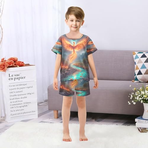 Pajama Sets Short Sleeve Phoenix Rising over Stream Soft Cotton Summer Sleepwear 2 Piece PJS Size 5-14T 1