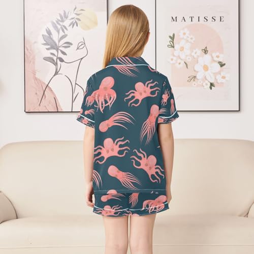 senya Cartoon Cute Octopus Satin Summer Pajama Sets Silk Short Sleeve Button Down Sleepwear 1