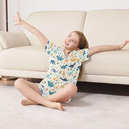 senya Animal Dinosaurs Satin Summer Pajama Sets Silk Short Sleeve Button Down Sleepwear 6