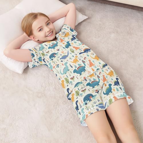 senya Animal Dinosaurs Satin Summer Pajama Sets Silk Short Sleeve Button Down Sleepwear 3