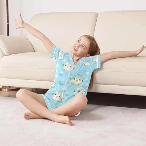 senya Sea Cute Fish Satin Summer Pajama Sets Silk Short Sleeve Button Down Sleepwear 5