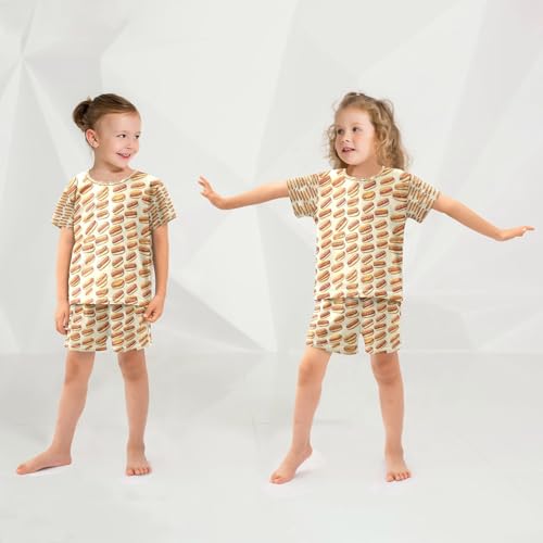 Pajama Sets Short Sleeve Hot Dog Cartoon Pattern Soft Cotton Summer Sleepwear 2 Piece PJS Size 5-14T 5