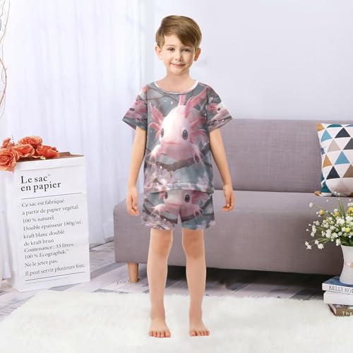 Pajama Sets Short Sleeve Kawaii Pink Axolotl Cherry Blossoms Soft Cotton Summer Sleepwear 2 Piece PJS Size 5-14T 5