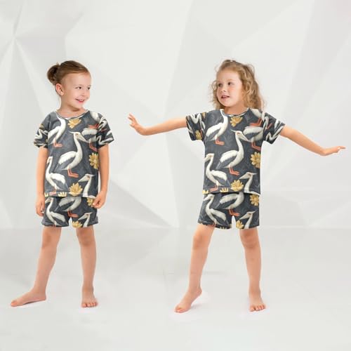 Pajama Sets Short Sleeve Elegant Bird Floral Design Soft Cotton Summer Sleepwear 2 Piece PJS Size 5-14T 2