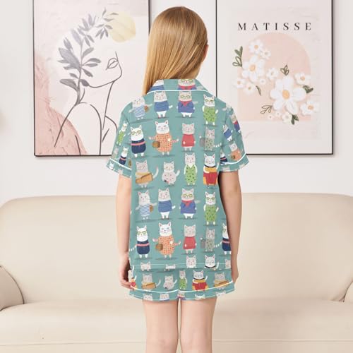 senya Colorful White Cat Satin Summer Pajama Sets Silk Short Sleeve Button Down Sleepwear 6