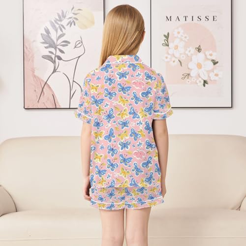 senya Blue Yellow Butterflies 1 Satin Summer Pajama Sets Silk Short Sleeve Button Down Sleepwear 3