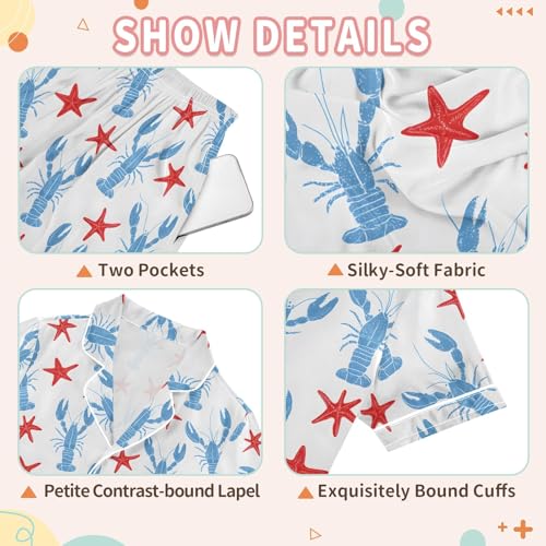 More information about Blue Lobster Stars Pattern Summer Satin Pajama Set, Cute Button-Down Sleepwear Pj Set for Sleep Wears