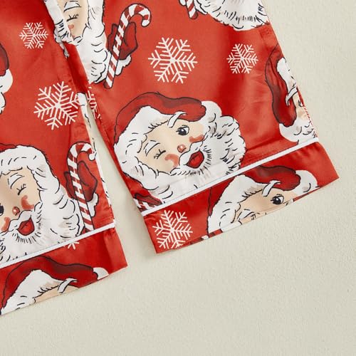 • Design:Cute christmas pajamas set for girls, classic santa print button down shirt tops, long sleeve blouese with long pants,cute baby girl christmas pajamas set, little girl christmas pjs set loungwear sleepwear