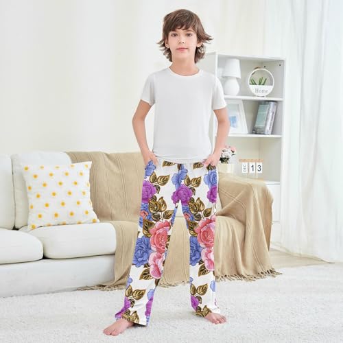 J JOYSAY Floral Peony Foliage Ivory Pajamas Pants Soft Long Pajama Bottoms Lounge Sleep Pants Size S-XL 7