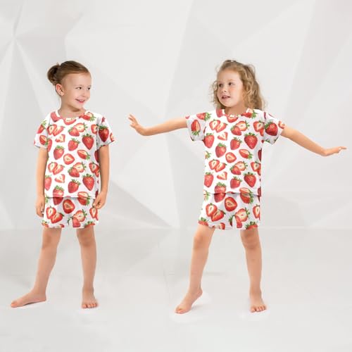 Red Strawberry Patterns Summer Cute Pajama Sets, Short Sets for Daily Wears and Sleep Wears 2