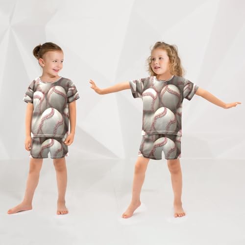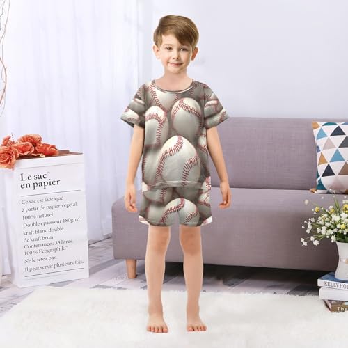 ALAZA Baseball 3d White Pajamas Set Short Sleeve Cotton Sleepwear Summer Pjs 2 Piece 5-14Y 2