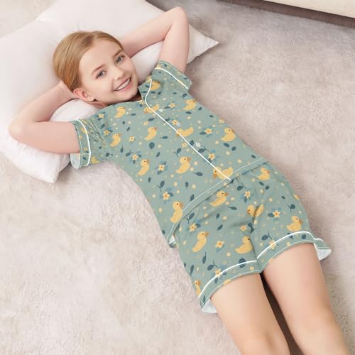 senya Small Duck Satin Summer Pajama Sets Silk Short Sleeve Button Down Sleepwear 1