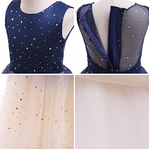 • Elegant Girls Dress Design: Long tulle pageant party dress for girls, O-neck , ankle length, hidden back Zipper. The sequins of the stars and the moon which are amazing and looks like a galaxy embellish the whole skirt . Flower girl dress for wedding, girl pageant dresses, kids prom dresses, elegant girls dress, girls evening dresses.