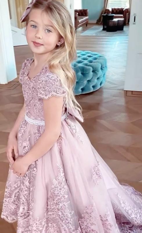 • Features: Flower girl dress features short sleeve, lace applique, detachable bow-knot, floor length, lace-up back, it will make your princess girl look so distinctive.