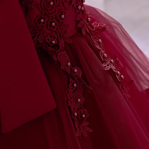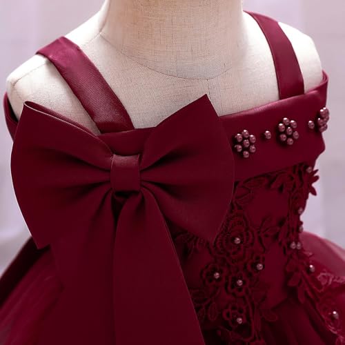 Embroidery Flower Girls Prom Gowns A-Line Puffy Wedding Bridesmaid Princess Party Tulle Dress for Toddler Kids 1-3 Years 4