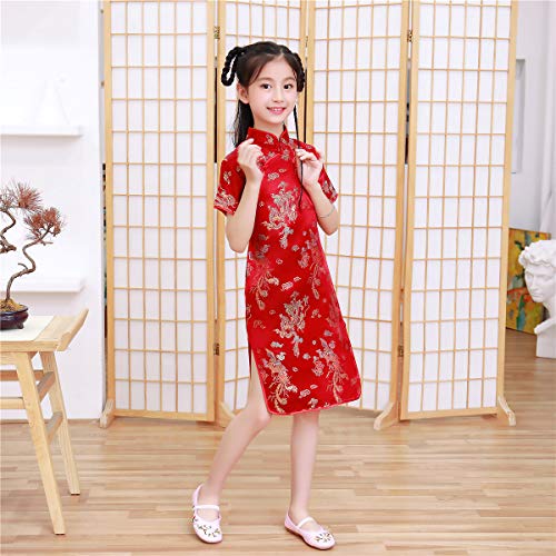 Shanghai Story Girls Chinese Dragon Phoenix Qipao Cheongsam Dress Size 150 Red 4