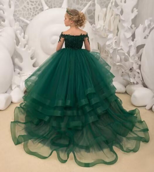 Long Sleeve Tulle Flower Girl Dress for Wedding Princess Pageant Dress for Kids Applique Party Prom Ball Gown 6