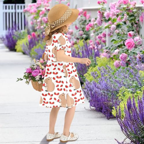 ALAZA Girls Summer Dress Short Sleeve Cute Capybara Animal Casual Girls Dresses for Kids 2-8Y 3