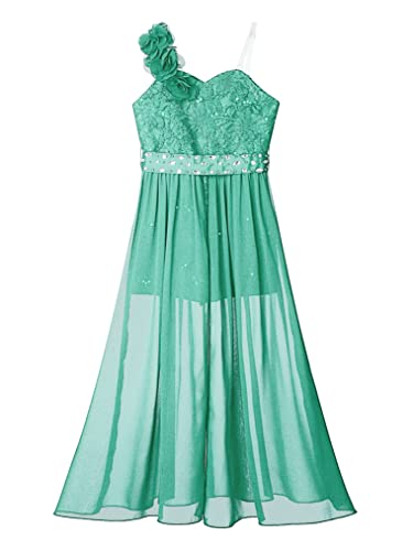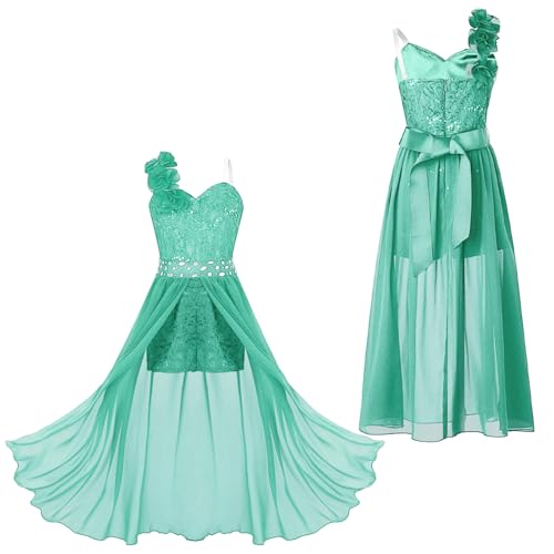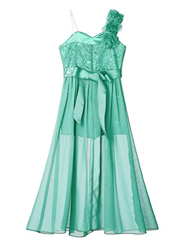 Choomomo Kids Flower Girls One Shoulder Romper Dress Wedding Banquet Party Maxi Ball Gown Dancewear 7
