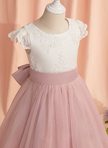 • Exquisite Design - Soft and multi-layer tutu design. This girls’ dress is design with a delicate white lace bodice and fully lined dusty rose tulle skirting. Flower girls dress features O-neck and backless, a tied belt with a bow-knot on the back, A-line knee-length, lace fly sleeves, and beautiful lace embroidery. High quality handmade embroidery design and handwork.