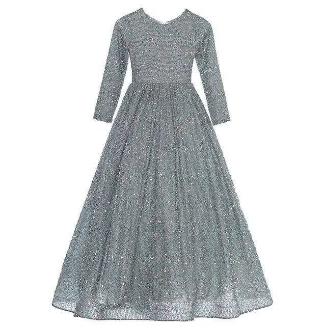 HOT ! Long Sleeve Sequin Pageant Dress Sparkly Flower Girl Dresses for Wedding Prom Kids Princess Ball Gown