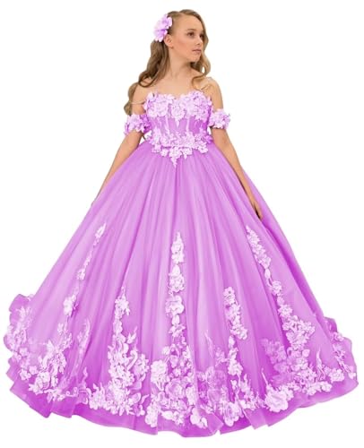Off Shoulder Flower Girl Dress Tulle Appliques Pageant Dresses for Girls Long Prom Ball Gown for Kids 5