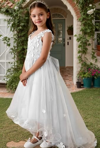 • Style Design: First communion dress for girls features with crew neck, 3d floral Appliques, spaghetti straps, puffy tulle, V neck, A-line high-low, the big bow can be adjusted, zipper closure. Suitable for your girl to wear at a pageant ball gowns party