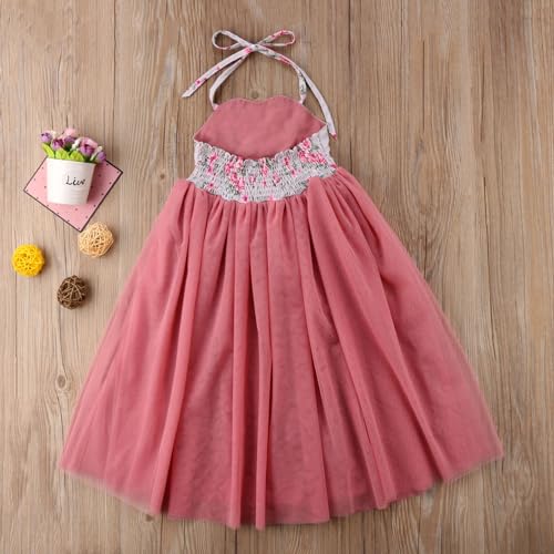 • Design: Girls sleeveless princess dress, halter neck, backless design, floral print and tulle stitching, ankle length, very elegant and sweet, making your baby look more beautiful.