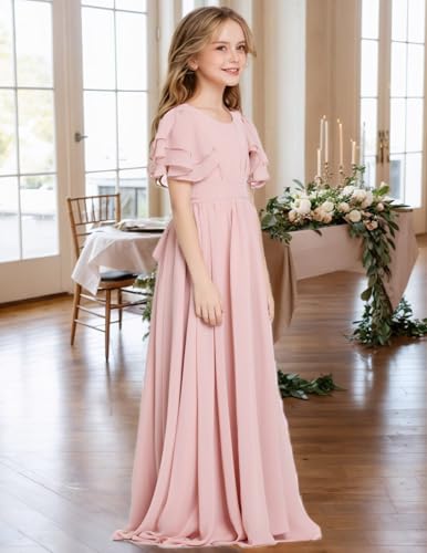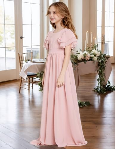 Junior Bridesmaid Dress Chiffon Flower Girl Dress Ruffle Fancy Dresses for Girls Long Formal Dresses Girls Maxi Dress Burgundy Size 12 4