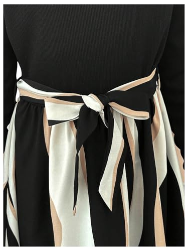 SweatyRocks Girl's Striped Dress Color Block A Line Crewneck Long Sleeve Dresses with Belt 6