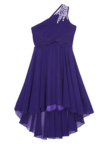 FEESHOW Junior Girls Sequin One Shoulder Pageant Formal Dress Chiffon High Low Bridesmaid Dress for Wedding Party Gown 6