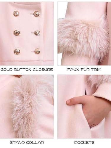 Haloumoning Toddler Girls Faux Fur Dress Coat Kids Winter Warm Jacket Long Sleeve Button Wool Coat 12 Months - 12 Years 5