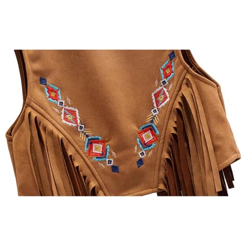 Girl's Open Front Fringe Vest Coat Tassel Vest Jacket Cowgirl Sleeveless Crop Vest Ethnic Cardigan 6