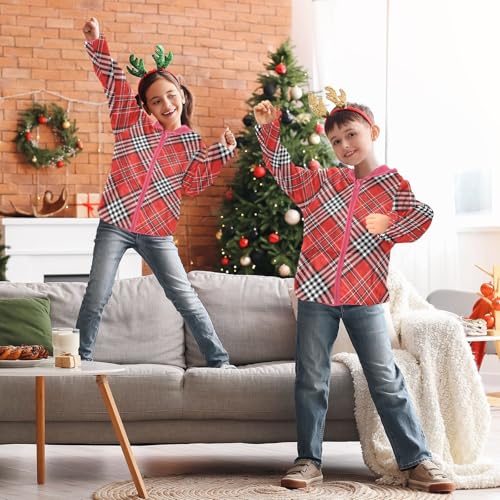 GuoChe Plaid Scotland Red Toddler Fleece Jacket With Hood 5