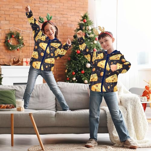 Cheese Wedges Space Planets Toddler Fleece Jacket Girl Boys Hooded Fleece Jacket Coat Warm Outwear Zip-up 3-10T 4