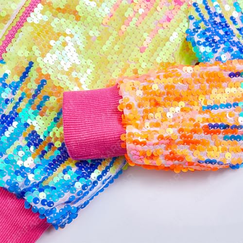 JEYPINMI Toddler Girls Long Sleeve Baseball Jackets Hip Hop Jazz Modern Dance Coat Sequins Performance Tops 6