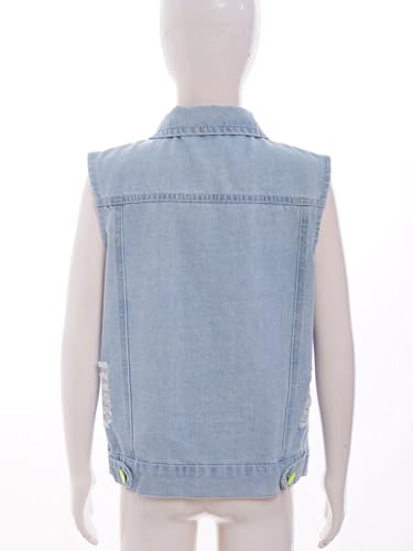 FEESHOW Girls Kids Lapel Retro Ripped Denim Vest Button-Down Waistcoat Sleeveless Jean Jacket Outerwear Daily Wear 6