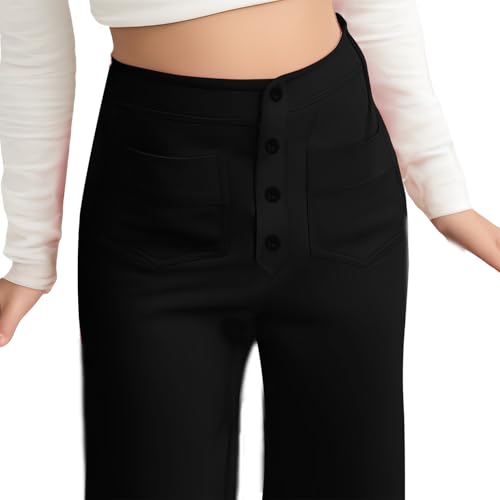 More information about Girls Flare Pants Kids High Waisted Button Casual Yoga Bootcut Pants Bell Bottoms with Multiple Pockets