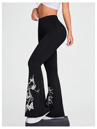 Milumia Girl's Butterfly Print High Waisted Flared Long Pants Yoga Dance Leggings 6