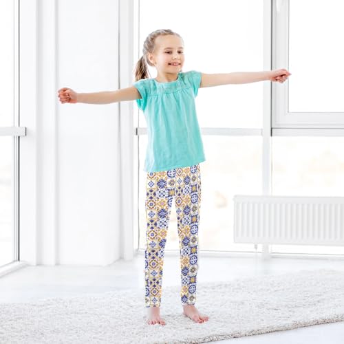 ALAZA Girls' Leggings Children's Yoga Pants Skinny Printed Dance Blue and Orange Moroccan Comfortable 4T 6