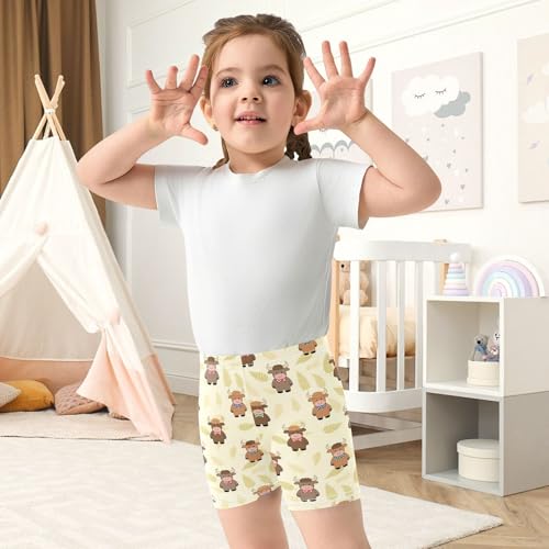 Cute Funny Highland Cattle Pattern Girls Shorts Elastic Waist Sports Shorts Girls Leggings Pants for 4-10 Years 4