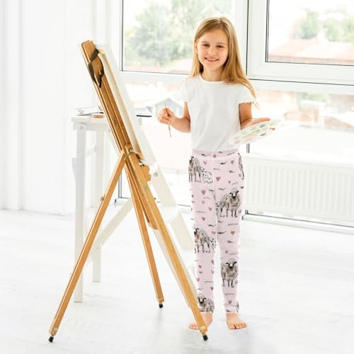 Lamb on Pink Girls Leggings,Workout Leggings for Girls Toddler Athletic Legging Size for 3-10T 7