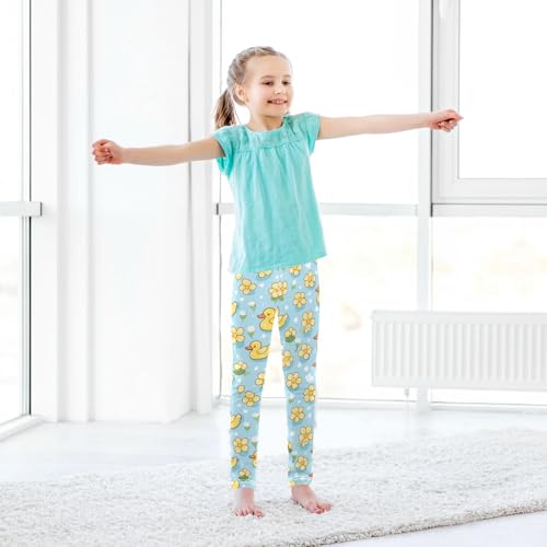 Cute Yellow Duck Girls' Leggings Toddler Doodles Flowers Cartoon Kids Yoga Pants Dance Active Tights 4T 7