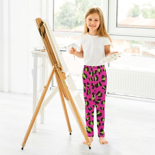 Leopard Green Girls Leggings,Workout Leggings for Girls Toddler Athletic Legging Size for 3-10T 7