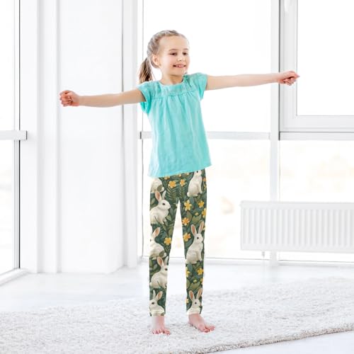 Flower White Rabbit Leaves L Girls Leggings Athletic Pants Tights Stretch Bottom 5