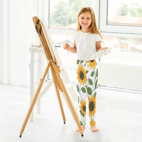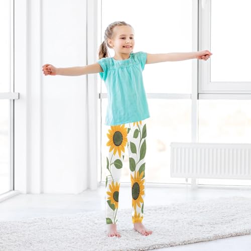 Bolaz Toddler Girls Leggings Printed Yoga Pants Leggings Sunflower with Green Leaves for Kids 7