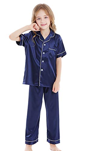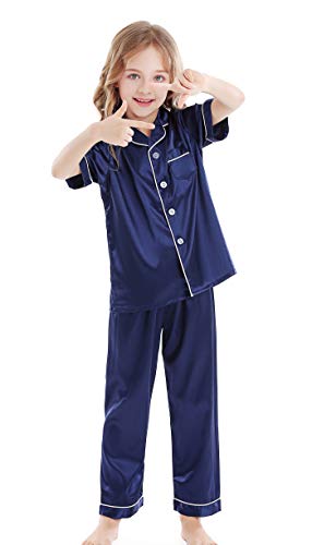Kids Satin Short-Top and Long-Pants 2-Pieces Pajamas Sleepwears Set 5